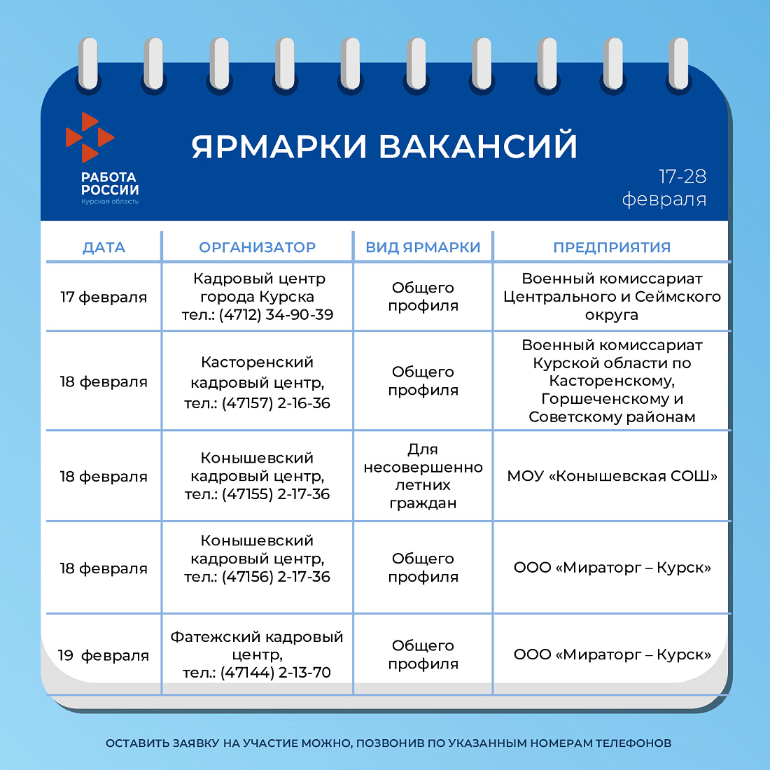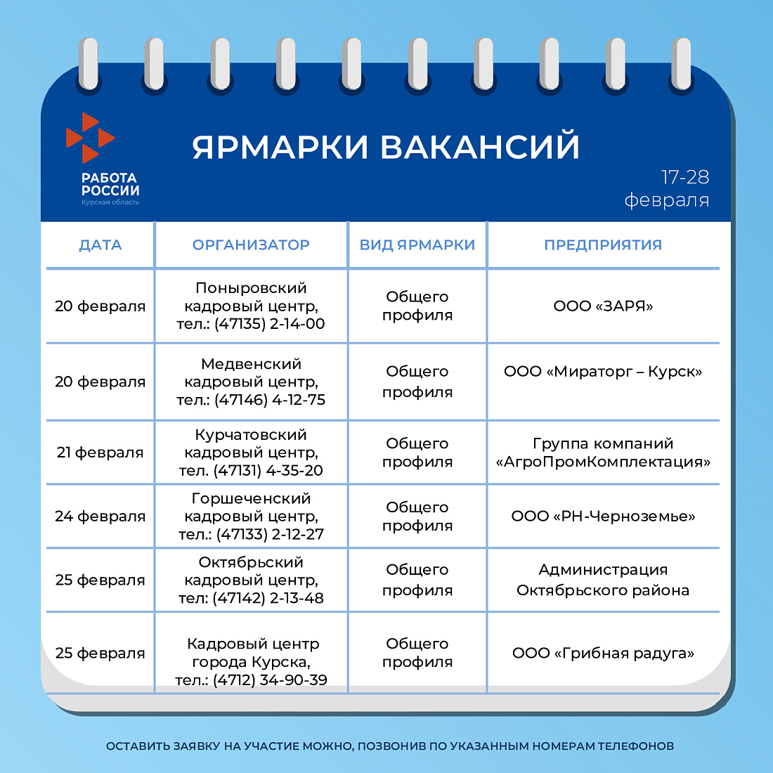 Ярмарки вакансий в феврале 2025 г.