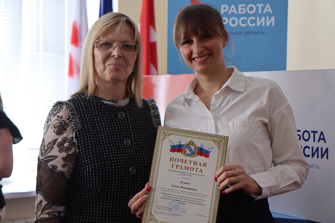 На мероприятии чествовали отличившихся сотрудников: четыре награждены Почётными грамотами Министерства труда и социальной защиты Российской Федерации, три – Благодарностями Министерства и социальной защиты Российской Федерации, Благодарность Правительства Курской области объявлена трём сотрудникам, Почётными грамотами Курской областной Думы отмечены пять сотрудников, Благодарностями Министерства по труду и занятости населения Курской области – семь, Почётными грамотами Министерства по труду и занятости населения награждены четыре сотрудника.