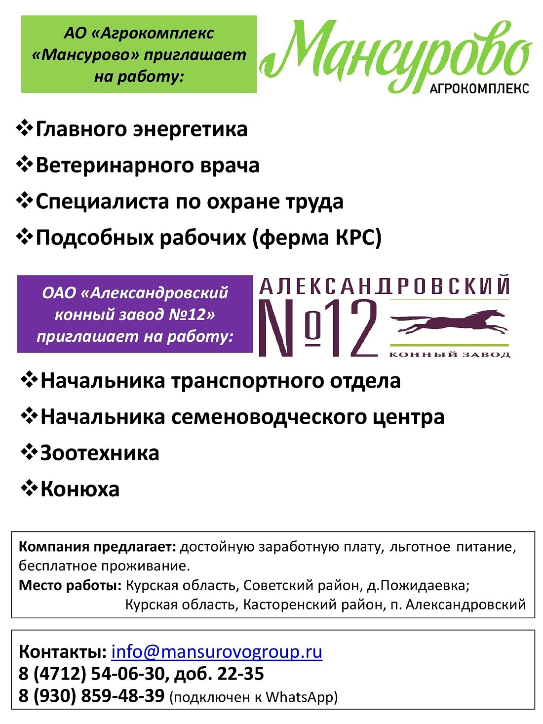 ВАКАНСИИ с предоставлением жилья при трудоустройстве
