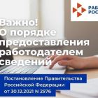Правительство РФ 30.12.2021 утвердило новый Порядок предоставления работодателем сведений и информации, предусмотренных п. 3 ст. 25 Закона РФ «О занятости населения в Российской Федерации»