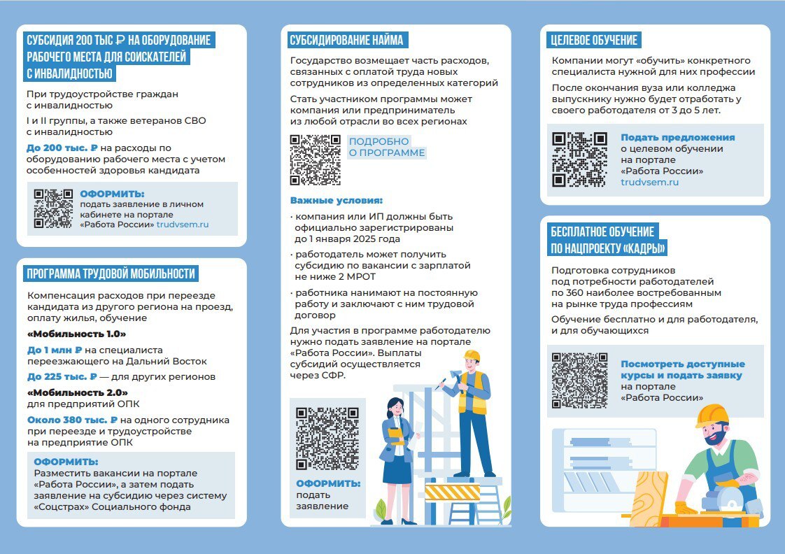 Информируем работодателей о мерах поддержки, реализуемых в рамках национального проекта «Кадры»